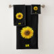Joli tournesol et monogramme sur le kit de serviettes de bain noir. Elégant design simple pour les célibataires et les couples !