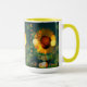 Belle tasse à café conçue qui aidera à égayer votre journée. Design très unique avec une image imprimée d'une peinture acrylique d'un tournesol brillant à la lumière du soleil.