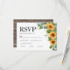 Carte RSVP faire-part de mariage avec un QR à l'arrière pour le site mariage dans un bois rustique avec des tournesols et le design eucalyptus. Il dispose de 3 choix de repas à l'avant avec une police élégante. La conception comporte un libellé formel traditionnel, mais vous pouvez la personnaliser avec n'importe quel texte nécessaire.