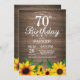 Rustic Sunflower 70th Birthday Invitation. Fleurs florales et Arrière - plan de bois rustique. Country Vintage Retro. Femmes Anniversaire. 12ème 13ème 15ème 16ème 18ème 20ème 21ème 30ème 40ème 50ème 60ème 70ème 80ème 90ème 100ème, tout âge. Numérique imprimable. Pour plus de personnalisation, cliquez sur le bouton "Customiser" et utilisez notre outil de conception pour modifier ce modèle.