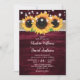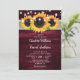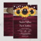 Ce faire-part de mariage rustique bordeaux avec du tournesol contre un burlap et un arrière - plan en bois de grange est parfait pour inviter vos invités à votre fête de mariage rustique bordeaux inspiré des tournesols. Facile à personnaliser le modèle.