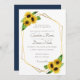 des tournesols à l'aquarelle moderne et romantique avec un dos bleu marine et un cadre géométrique en faux or.