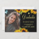 Carte de faire-part de graduation florale élégante avec bouquets de tournesols et un script de typographie faux or chic sur un arrière - plan noir solide (couleur changeable).++++++++++ Facile à personnaliser avec votre nom, l'école et la classe, votre texte personnalisé, et 2 photos des deux côtés! +++++++++++ Si vous le souhaitez dans d'autres couleurs spécifiques, veuillez contacter le concepteur via le bouton MESSAGE ci-dessous.