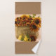 Une vie immobile d'un panier de bidon a rempli de tournesols oranges avec un arrière - plan texturisé.