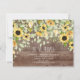 Faire-part fleurie en mouvement avec une belle goutte de tournesol sur un arrière - plan en bois marron rustique avec un dos fleuri assorti.