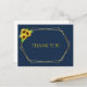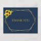Carte de remerciements moderne et romantique avec des tournesols aquarelle sur un arrière - plan bleu marine et une fausse forme géométrique or.