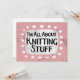 "I'm All About Tricot Stuff" est un design de texte mignon en rose avec du texte en noir et rouge, avec une forme d'accent blanc et des points blancs texturés blancs qui l'entourent.