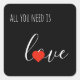 Cet autocollant est conçu avec le type; il dispose d'un arrière - plan noir. Dans le coin inférieur droit, le mot "amour" dans un texte de script blanc. Il y a un coeur rouge où le "o" est. Dans le coin supérieur gauche se trouvent les mots "TOUT CE DONT VOUS AVEZ BESOIN".