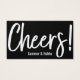 Dans une police manuscrite décontractée et moderne, j'ai créé une superposition graphique qui dit : "Tout ce dont vous avez besoin, c'est de l'amour. Amour et boisson gratuite. Celui-ci est sur nous !" Sur le dos, dans le même joli type, la superposition graphique dit "Bravo !" Les champs modèles en bas ont été installés en utilisant les mots "Bon pour un boisson adulte gratuite", sur le devant, et en tenant un espace pour vos noms à l'arrière. *****VEUILLEZ NOTER que le graphique représentant "Cheers !" a été laissé assez grand ; j'ai intentionnellement autorisé le texte de l'image à courir en dehors des lignes "safe". Veuillez noter qu'il s'agissait d'une décision de conception consciente, mais si vous êtes préoccupé par la possibilité que le texte puisse être coupé un peu en production, n'hésitez pas à cliquer pour une modification plus poussée et réduire simplement la taille de ce graphique. Sinon, vous pouvez certainement me contacter pour obtenir de l'aide! Tout le texte est blanc et l'arrière - plan modifiable est noir, ce qui peut être modifié en n'importe quelle couleur. Après la gravité de votre événement spécial, certains apprécieront l'humour d'un coupon de boisson décontracté, léger et drôle. // 62 // Conçu par Melody Watson pour Paper Muserie.
