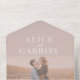 Un faire-part de mariage photo moderne avec une bordure de style pinceau blanc et typographie traditionnelle élégante.