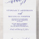 Une belle faire-part de mariage avec un design élégant en bleu marine.