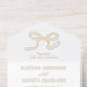 Célébrez votre amour avec notre Elegant Gold Foil Bow tout-en-un faire-part de mariage. Ce design intemporel présente en haut un délicat arc dessiné à la main, imprimé en feuille d'or luxueuse pour un look romantique et raffiné. Vos noms et détails mariages sont magnifiquement arrangés en caractères classiques avec une touche de script moderne, créant une esthétique équilibrée et sophistiquée. La carte postale RSVP en bas permet aux clients de répondre facilement par la poste. Parfait pour des mariages élégants, minimalistes ou coquettes, cette invitation est à la fois élégante et pratique.