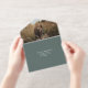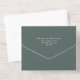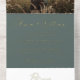 Élégante faire-part de mariage tout-en-un vert sauge avec votre photo sur le rabat supérieur, vos prénoms, "Réception à suivre" et "Rsvp" présenté dans un script chic, vos détails d'invitation dans la typographie serif classique, et une carte postale RSVP déchirante blanche, avec tout le texte intérieur rendu dans votre choix d'or, argent ou feuille d'or rose. Vous pouvez ajuster la taille du script pour des noms plus longs ou plus courts en modifiant l'outil de conception.