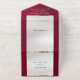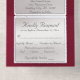 This elegant All In One wedding invitation features a silver pearl center on a burgundy background, an ornate frame and scroll heart with bride & groom's names in foil. Designed to coordinate with the "Ornate Frame & Hearts" Wedding Collection. To change details, click «Personalize». To move the text or change the text size, font, or color click «Click to customize further»