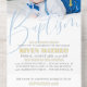 Gold foil boy baptism all in one invitation with rsvp card included and personalized with a photo of your son. Pale blue and gold baptism invitation for a baby boy with a photo template and a cross printed in gold foil.