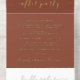 Elégante invitation tout-en-un à la réception de mariage en terre cuite décontractée qui présente "Happily Ever After Party" présentée en lettres simples et un script chic avec des swashes, vos faire-part de mariage et de réception, et une carte postale RSVP à déchirures blanches, le tout rendu dans votre choix d'or, argent ou rose véritable feuille d'or.