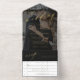 Élégant script de calligraphie de feuille d'or moderne noir superposition photo tout en un sceau et envoyer le modèle avec déchirure rsvp carte postale. ++++++++++++++++ Facile à personnaliser avec votre image et texte de part et d'autre ! L'invitation est appropriée pour classique formel élégant tendance tous les saisons mariages.