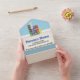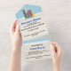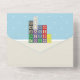 Cette invitation tout-en-un à thème scientifique avec carte RSVP amovible présente un arrière - plan d'atomes modèle Bohr en bleu pâle sur une base bleu ciel. Les panneaux de crème disposés sur le dessus de ce motif sont recouverts d'une ligne blanche pour donner l'impression d'un tableau de base au bas d'un mur fournissant une base pour un échantillon de texte à l'intérieur qui peut être customisé pour votre événement et un espace vide à l'extérieur qui peut être utilisé pour adresser les cartes au destinataire et à la section retournable avec l'adresse de retour appropriée. Enfin, un ensemble de blocs d'alphabet en bois sur le thème de la chimie, avec la formule chimique pour l'ocytocine, l'"hormone du câlin" est posée sur le rabat au-dessus du texte et sur le dos lorsqu'il est fermé. Les éléments de la formule sont mélangés à des blocs avec des outils et des structures pour mettre en valeur une partie de la variété de concepts et de champs associés à la chimie, y compris des tubes d'essai, une fiole, des structures moléculaires et une orbitale électronique. N'oubliez pas de consulter la collection complète de Future Chemist's Blocks pour plus de cadeaux et de produits pour un baby shower ou le petit dans votre vie.