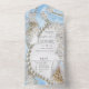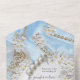 Tout En Un Soie bleue et perles dans une seule invitation de