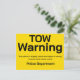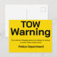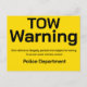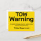 Bright yellow sign warning that a car, truck or other vehicle is illegally parked and subject to towing. This is set up so you can type in the number of the police department.