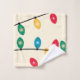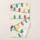 Colourful strings of merry and bright Christmas Holiday Lights on a cream background.