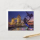 L'emblématique Tower Bridge de Londres vu la nuit, avec la Girl avec une statue de dauphin au premier plan.