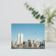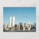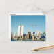 New York City postcard pre 911 featuring gull flying past World Trade Centre buildings. Fully customizable.