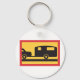An icon of a car towing a caravan. This design looks really effective on these Keychain