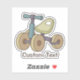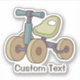 Wooden toy bike icon with four wheels in vintage colour palette. Custom text.