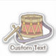 Toy drum icon with strap and drumsticks in vintage colour palette. Custom text.