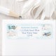 Les avions de jouet d'aquarelle volent contre un ciel bleu et des nuages blancs moelleux pour ces étiquettes d'adresse de retour de l'aquarelle, parfait pour un Anniversaire, Baptême ou Baby shower.
