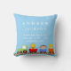A cute train birth announcement pillow featuring the option of personalized baby stats. A wide array of other baby pillows and products are available at my store.