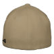 Fits well due to elastic edging, not adjustable. Good qualty material. Good quality embroidering. Subtle lettering (white on beige) just as my wife likes.
