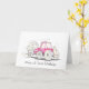 Photo d'un stylo original/aquarelle Peinture de l'artiste anglais Terry Donnelly "Tractor", un tracteur rose avec remorque