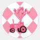 Stickers ou enveloppes pour annonces pour filles et invitations à la douche avec joli tracteur rose avec ballons indiquant "It’s a Girl!" Les ballons ont également des dessins d'une épingle de sécurité de couche, d'un biberon et d'un hochet. Créé par KLeighE d'Hinterland Harmony Illustrations par KLeighE