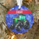Un tracteur vert sur un arrière - plan bleu étoilé ravira tout fermier à coeur.