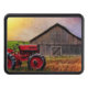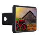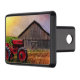 This trailer hitch cover features a tractor and barn.