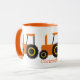 Coffee mug tractor design. You can customise this mug with any text of your choice. Should you require any help with customising then contact us through the link on this page. Tractor design personalised coffee mug.