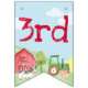 This birthday banner will be perfect for your farm theme / tractor themed birthday party! Banner reads "Happy 3rd Birthday" but personalize with the words and age of your choice. Perfect for a "Three-I-E-I-O" farm animal birthday party. Design features a farm scene with red barn, green tractor, cow, and pig.
