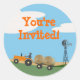 Tractor on the Farm Party Envelope Seal: Orange Tr Classic Round Sticker
