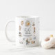 Traditional 12 days of Christmas' Holiday Coffee Mug. Design features the text - Twelve days of Christmas in elegant script, framed with the cutest watercolor illustrations of all the characters from the festive song, a season greeting, the lyrics and family name. A magical gift for some special this christmas.