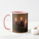 The vibrant pink candle, known as the "Gaudete" candle, marks the Third Sunday, a time for rejoicing and renewed hope.1 Nestled within a traditional evergreen wreath adorned with natural pinecones, this image evokes the warmth and spiritual significance of the Christmas season. The soft, glowing candlelight casts a peaceful ambiance, making it a perfect addition to your holiday-themed products.