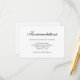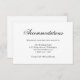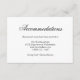 Traditional wedding enclosure card featuring the title "Accommodations" in black calligraphy font and your information below, over a white background. The backside is white and may be changed to any colour you wish. If you’re having a destination wedding or many of your guests are coming from out of town, these enclosure cards can be included with your invitation to provide information about local hotels and any discounts you may have arranged for your guests. This classic design is perfect for a formal, black tie wedding.