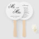 Typography wedding program hand fan featuring the words, "Mr. and Mrs." in elegant black calligraphy and your names and wedding date, over a white background. Add your ceremony events on the back. If you will be having an outdoor wedding, these hand fans are a great to offer to your guests to help them keep cool and also make a great souvenir.