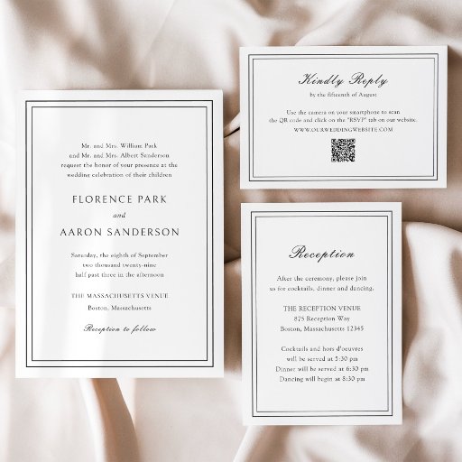 Traditional Black and White Timeless Wedding Acrylic Invitations