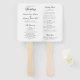 Traditional style wedding program hand fan featuring a simple design with your names and the headers in an elegant calligraphy. The front has your order of ceremony and the back has your wedding party and thank you message. This classic black and white wedding program hand fan is perfect for a formal wedding.
