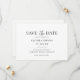 A classic and clean black and white wedding save the date card. Personalize with your names, and future wedding details for guests.