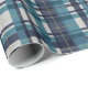 Traditional blue, teal, gold and white madras plaid grid consisting of crisscrossed, horizontal and vertical bands pattern. Farmhouse country rustic holiday pattern gift wrapping paper.
