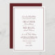 A classic, traditional formal burgundy wedding invitation, featuring script calligraphy. Perfect for the modern bride having a formal affair. See full collection here: https://www.zazzle.com/collections/elegant_burgundy_classic_script_wedding-119551906868087326 Contact designer for matching products. Thank you sooo much for supporting our small business, we really appreciate it!