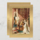 Beautiful Traditional Catholic Wedding Invitation of the betrothal of Mary & Joseph with the High Priest in the temple. All text may be easily customized. The background is a gold background on the front and a lace background on the back of the card.